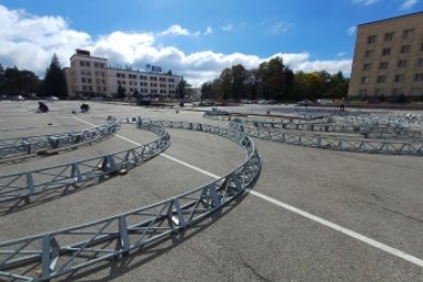 Каток начали монтировать на площади Ленина в Ставрополе